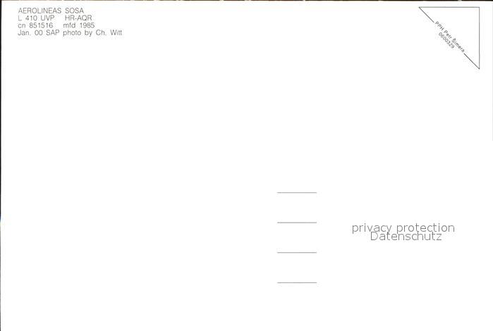 Flugzeuge Zivil Aerolineas SOSA L410 UVP HR-AQR cn 851516 postalisch nicht gelaufen Erhaltung siehe scans