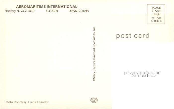 Flugzeuge Zivil Aeromaritime International Boeing B-747-3B3 F-GETB postalisch nicht gelaufen Erhaltung siehe scans [PaolaD17]