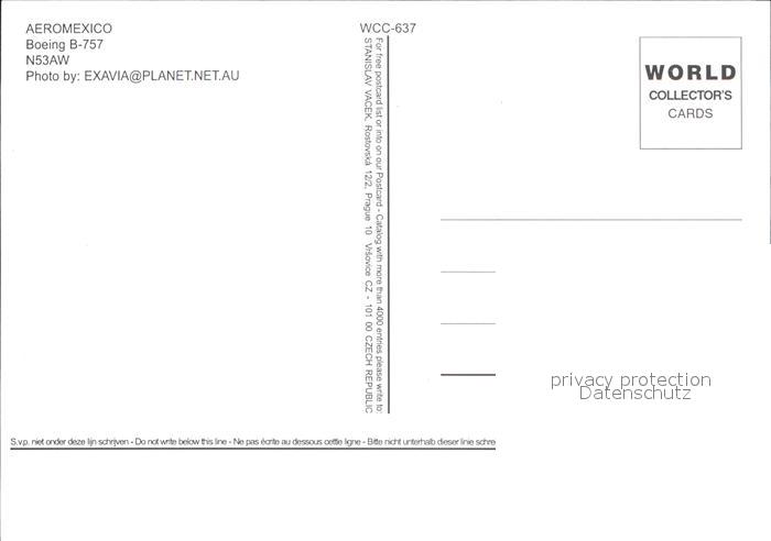Flugzeuge Zivil AEROMEXICO BOEING B-757 N53AW postalisch nicht gelaufen Erhaltung siehe scans