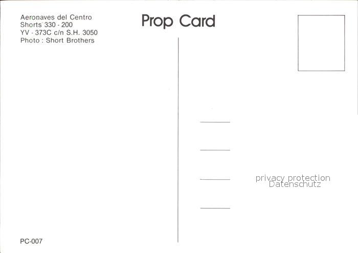 Flugzeuge Zivil Aeronaves del Centro Shorts 330-200 YV-373C c/n SH 3050 postalisch nicht gelaufen Erhaltung siehe scans