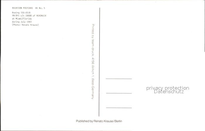 Flugzeuge Zivil Aeronica Boeing 720-051B YN-BYI c/n 18688 postalisch nicht gelaufen Erhaltung siehe scans