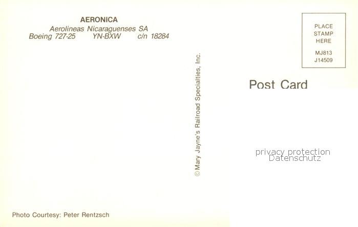 Flugzeuge Zivil Aeronica Boeing 727-25 YN-BXW c/n 18284 postalisch nicht gelaufen Erhaltung siehe scans [PaolaD17]