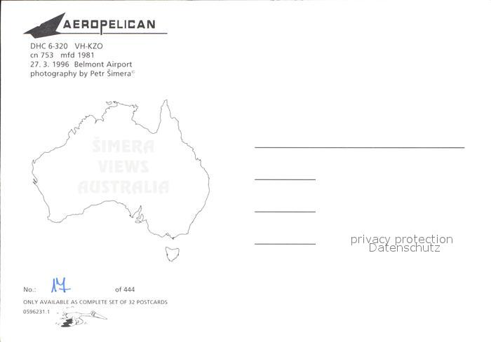 Flugzeuge Zivil AeroPelican DHC-6-320 VH-KZO cn 753 postalisch nicht gelaufen Erhaltung siehe scans