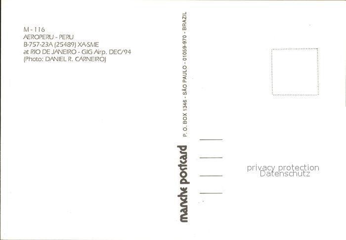 Flugzeuge Zivil Aeroperu B-757-23A 25489 XA-SME postalisch nicht gelaufen Erhaltung siehe scans