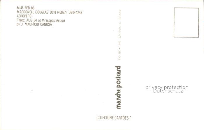 Flugzeuge Zivil AeroPeru McDonnell Douglas DC-8 46027 OB-R-1248 postalisch nicht gelaufen Erhaltung siehe scans