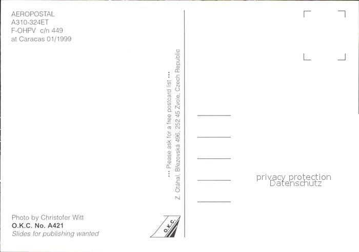 Flugzeuge Zivil Aeropostal A310-324ET F-OHPV c/n 449 postalisch nicht gelaufen Erhaltung siehe scans