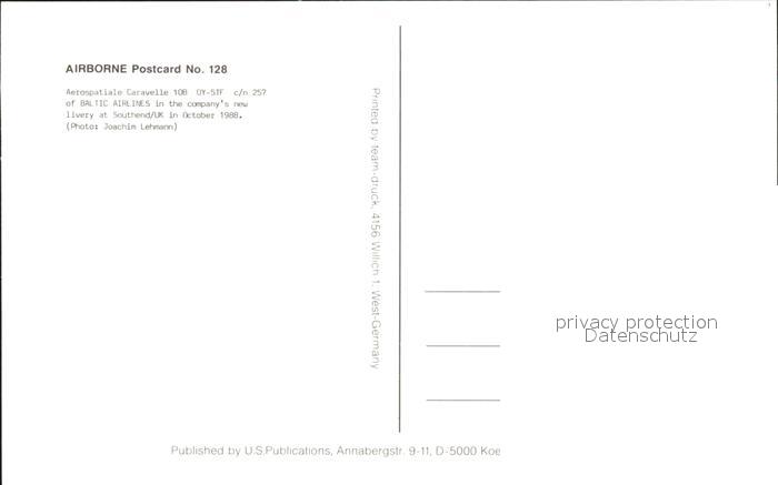 Flugzeuge Zivil Aerospatiale Caravelle 10B OY-STF c/n 257 Baltic Airlines postalisch nicht gelaufen Erhaltung siehe scans