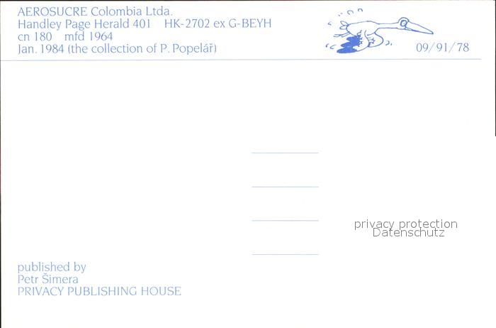 Flugzeuge Zivil Aerosucre Colombia Ltda Handley Page Herald 401 HK-2702 ex G-BEYH cn 180 postalisch nicht gelaufen