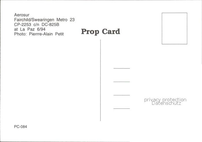 Flugzeuge Zivil Aerosur Fairchild Swearingen Metro 23 CP-2253 c/n DC-825B postalisch nicht gelaufen Erhaltung siehe scans