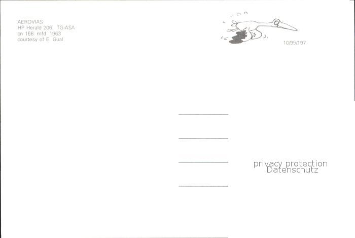 Flugzeuge Zivil Aerovias HP Herald 206 TG-ASA cn 166 postalisch nicht gelaufen Erhaltung siehe scans