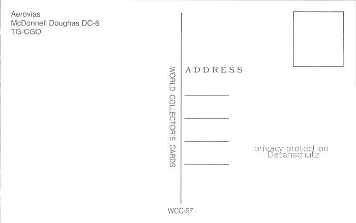 Flugzeuge Zivil Aerovias McDonnell Douglas DC-6 TG-CGO postalisch nicht gelaufen Erhaltung siehe scans