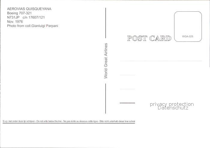 Flugzeuge Zivil Aerovias Quisqueyana Boeing 707-321 N731JP c/n 17607/121 postalisch nicht gelaufen Erhaltung siehe scans
