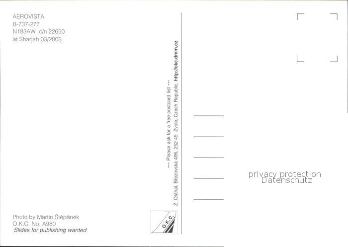Flugzeuge Zivil Aerovista B-737-277 N183AW c/n 22650 postalisch nicht gelaufen Erhaltung siehe scans