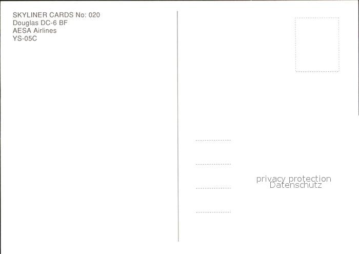 Flugzeuge Zivil AESA Airlines Douglas DC-6 BF YS-05C postalisch nicht gelaufen Erhaltung siehe scans