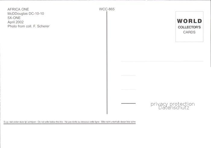 Flugzeuge Zivil Africa One McDDouglas DC-10-10 5X-One postalisch nicht gelaufen Erhaltung siehe scans