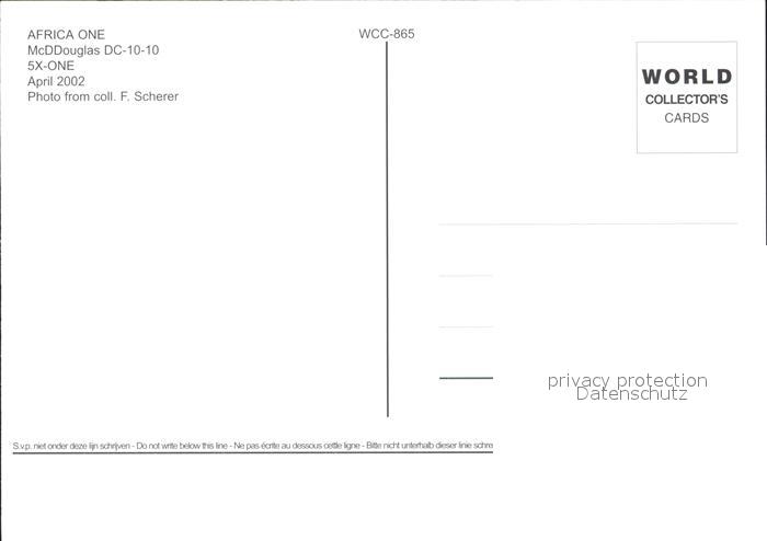 Flugzeuge Zivil Africa One McDDouglas DC-10-10 5X-ONE postalisch nicht gelaufen Erhaltung siehe scans
