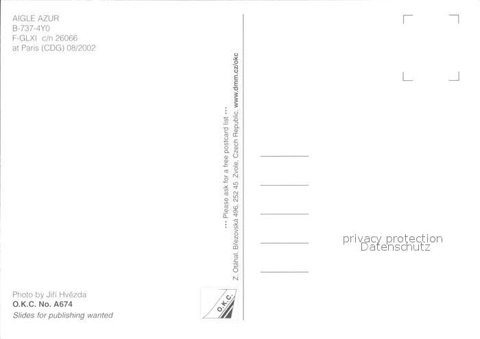 Flugzeuge Zivil Aigle ‚Azur B-737-AYO F-GLXI Paris postalisch nicht gelaufen Erhaltung siehe scans
