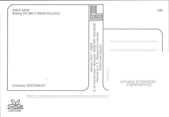 Flugzeuge Zivil Aigle Azur Boeing 737-200 F-GMJD postalisch nicht gelaufen Erhaltung siehe scans