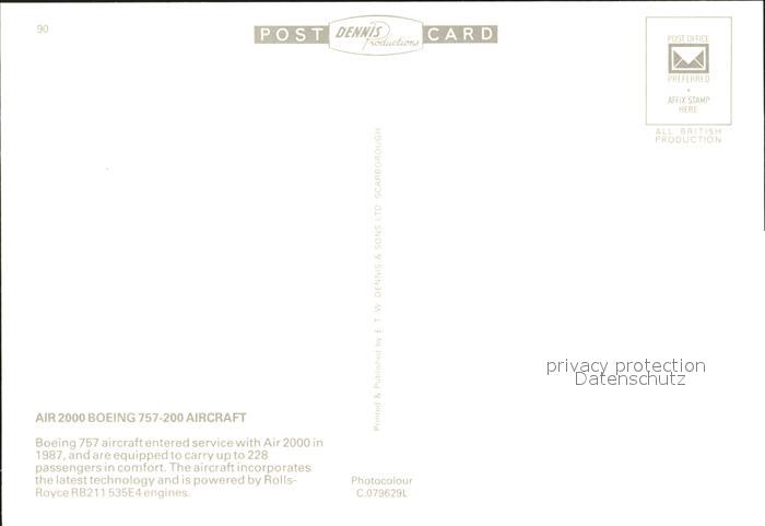 Flugzeuge Zivil Air 2000 Boeing 757-200 Aircraft postalisch nicht gelaufen Erhaltung siehe scans