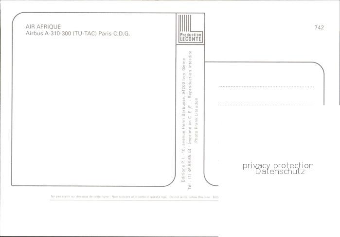 Flugzeuge Zivil Air Afrique Airbus A-310-300 TU-TAC postalisch nicht gelaufen Erhaltung siehe scans