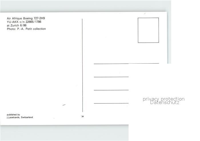 Flugzeuge Zivil Air Afrique Boeing 727-2H9 YU-AKK c/n 22665/1786 postalisch nicht gelaufen Erhaltung siehe scans