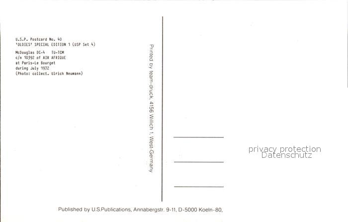 Flugzeuge Zivil Air Afrique McDouglas DC-4 TU-TCM c/n 10392 postalisch nicht gelaufen Erhaltung siehe scans