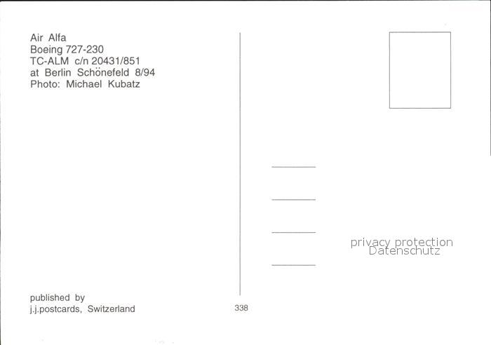Flugzeuge Zivil Air Alfa Boeing 727-230 TC-ALM c/n 20431/851 postalisch nicht gelaufen Erhaltung siehe scans