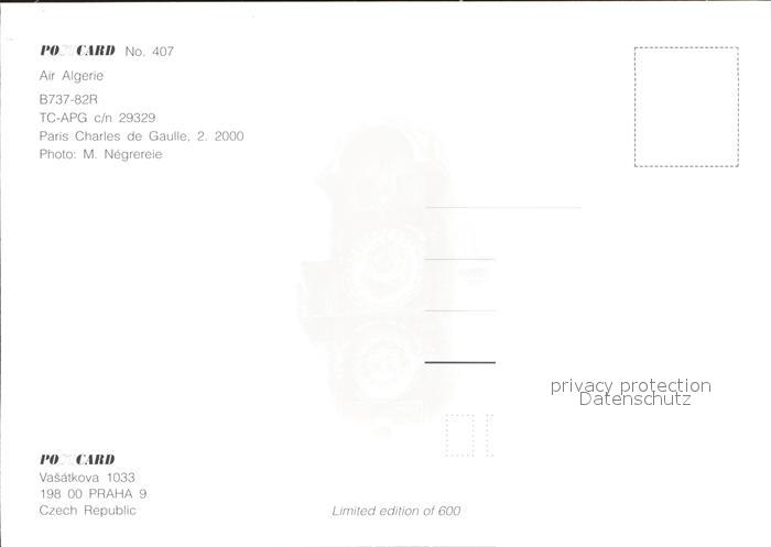 Flugzeuge Zivil Air Algerie B737-82R TC-APG c/n 29329 postalisch nicht gelaufen Erhaltung siehe scans