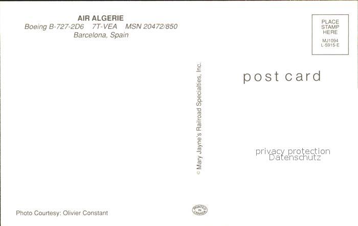 Flugzeuge Zivil Air Algerie Boeing B-727-2D6 7T-VEA MSN 20472/850 postalisch nicht gelaufen Erhaltung siehe scans