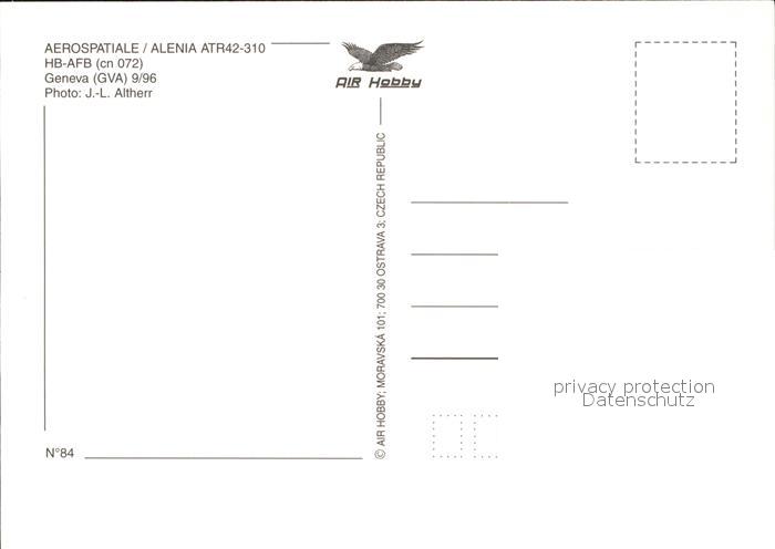 Flugzeuge Zivil Air Alpes Aerospatiale Alenia ATR42-410 HB-AFB cn 072 postalisch nicht gelaufen Erhaltung siehe scans