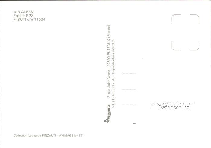 Flugzeuge Zivil Air Alpes Fokker F.28 F-BUTI c/n 11034 postalisch nicht gelaufen Erhaltung siehe scans