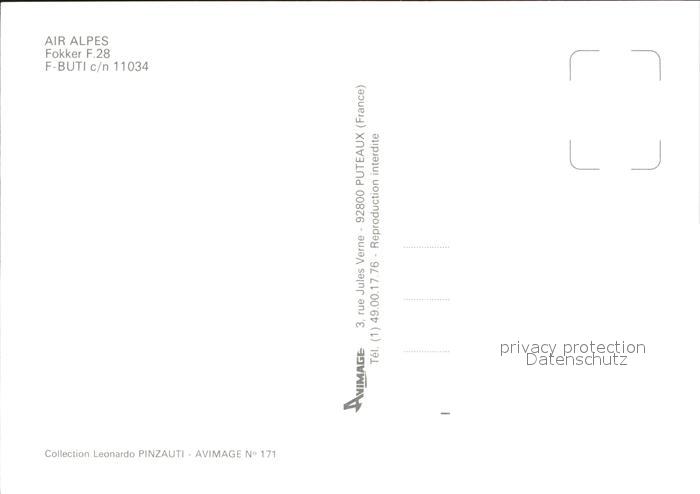 Flugzeuge Zivil Air Alpes Fokker F-28 F-BUTI c/n 11034 postalisch nicht gelaufen Erhaltung siehe scans
