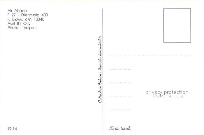 Flugzeuge Zivil Air Alsace F27 Friendship 400 F-BYAA c/jn 10340 postalisch nicht gelaufen Erhaltung siehe scans