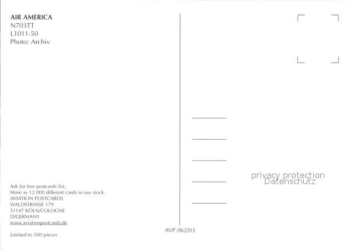 Flugzeuge Zivil Air America N703TT L-1011-50 postalisch nicht gelaufen Erhaltung siehe scans