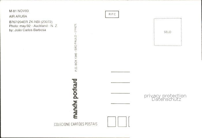 Flugzeuge Zivil Air Aruba B767-204ER ZK-NBI 23072 postalisch nicht gelaufen Erhaltung siehe scans