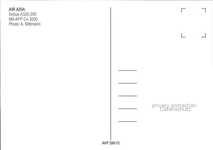 Flugzeuge Zivil Air Asia A320-200 9M-AFP Cn3000 postalisch nicht gelaufen Erhaltung siehe scans