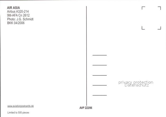 Flugzeuge Zivil Air Asia A320-214 9M-AFA Cn2612 postalisch nicht gelaufen Erhaltung siehe scans