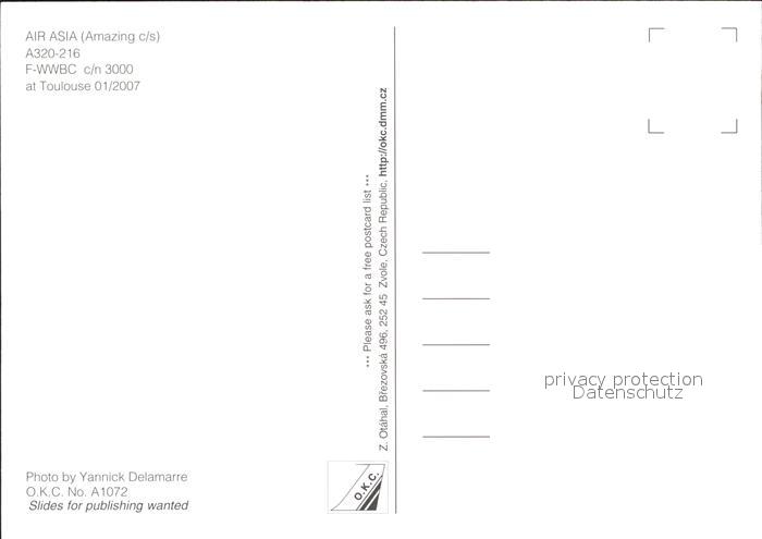 Flugzeuge Zivil Air Asia A320-216 F-WWBC c/n 3000 postalisch nicht gelaufen Erhaltung siehe scans