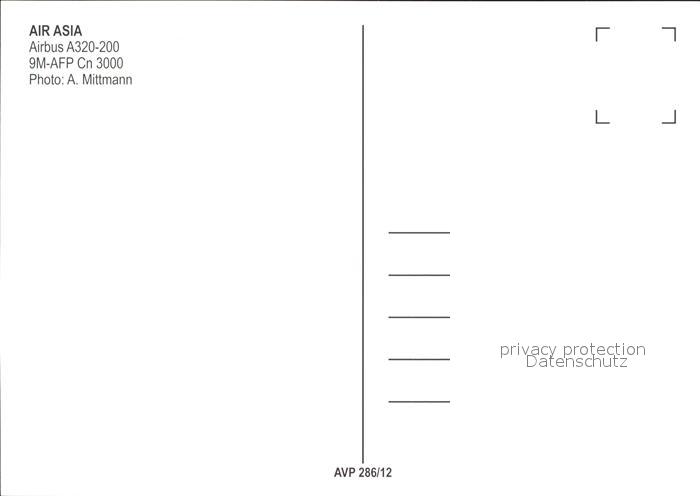 Flugzeuge Zivil Air Asia Airbus A320-200 9M-AFP Cn 3000 postalisch nicht gelaufen Erhaltung siehe scans