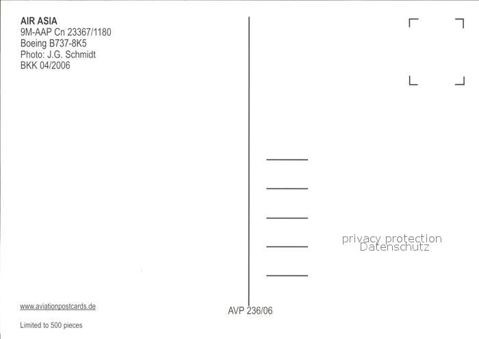 Flugzeuge Zivil Air Asia Boeing 737-8K5 9M-AAP Cn 23367/1180 postalisch nicht gelaufen Erhaltung siehe scans