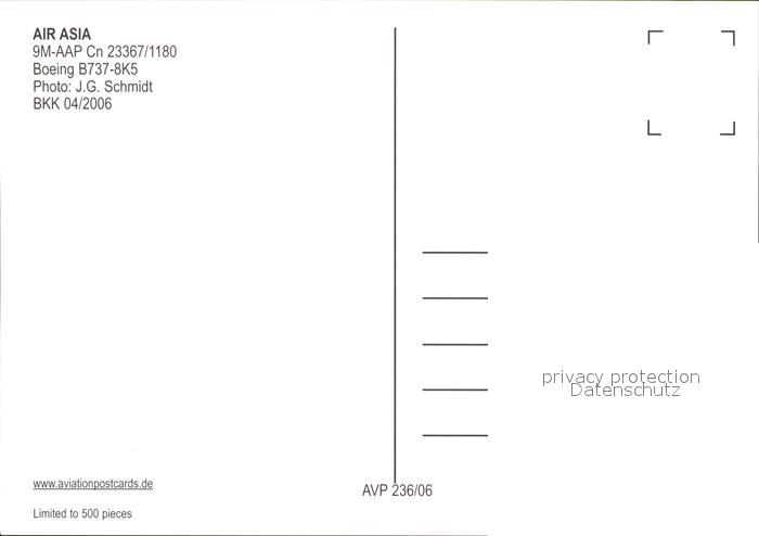 71808795 Flugzeuge Zivil Air Asia Boeing B737-8K5 9M-AAP Cn 23367/1180 KatCode 22120000001300