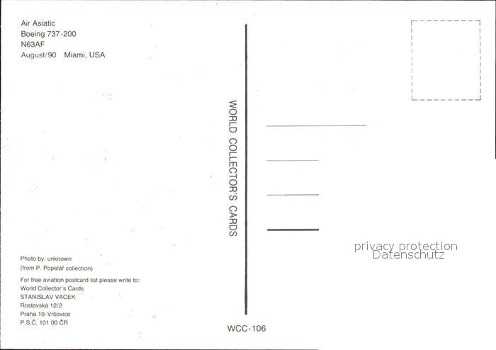 Flugzeuge Zivil Air Asiatic Boeing 737-200 N63AF postalisch nicht gelaufen Erhaltung siehe scans