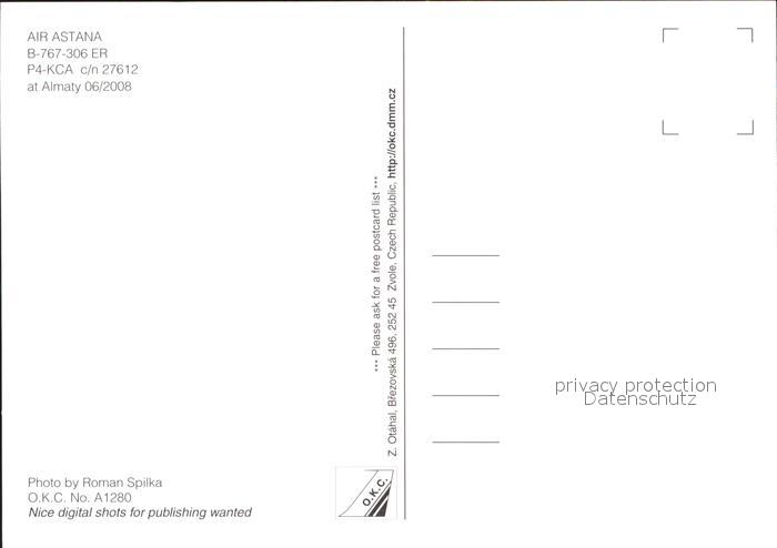 Flugzeuge Zivil Air Astana B-767-306ER P4-KCA c/n 27612 postalisch nicht gelaufen Erhaltung siehe scans