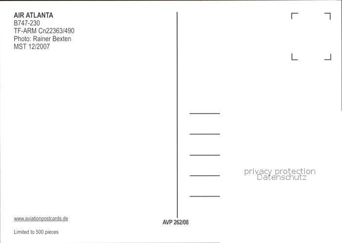 Flugzeuge Zivil Air Atlanta B-747-230 TF-ARM Cn 22363/490 postalisch nicht gelaufen Erhaltung siehe scans