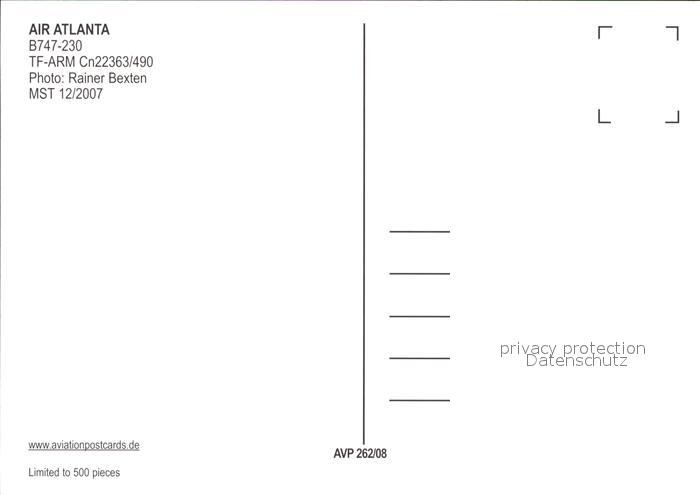 Flugzeuge Zivil Air Atlanta B747-230 TF-ARM Cn22363/490 postalisch nicht gelaufen