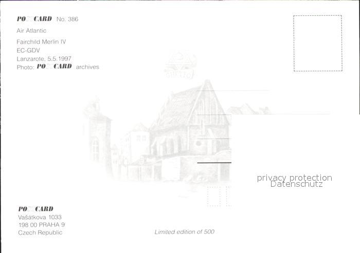 Flugzeuge Zivil Air Atlantic Fairchild Merlin IV EC-GDV postalisch nicht gelaufen