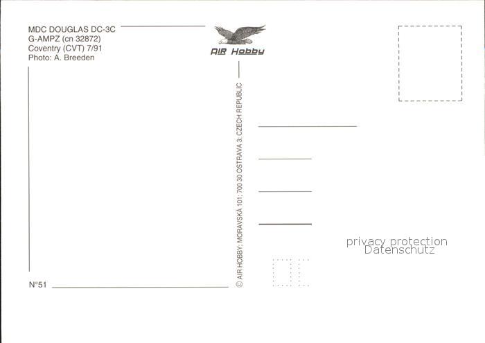 Flugzeuge Zivil Air Atlantique MDC Douglas DC-3C G-AMPZ cn 32872 postalisch nicht gelaufen Erhaltung siehe scans