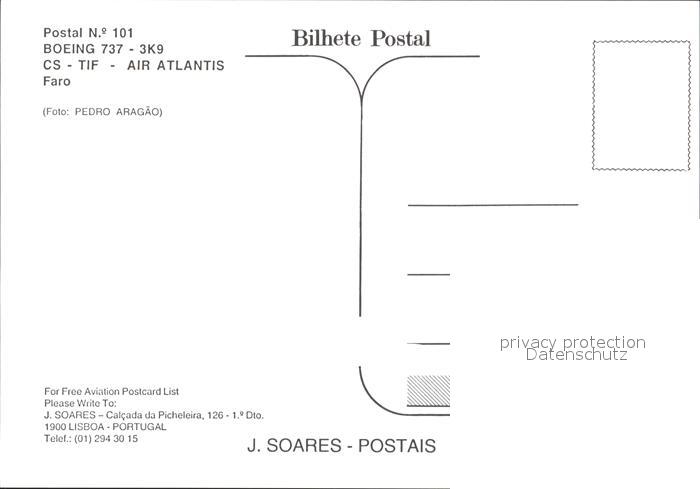 Flugzeuge Zivil Air Atlantis Boeing 737-3K9 CS-TIF postalisch nicht gelaufen Erhaltung siehe scans