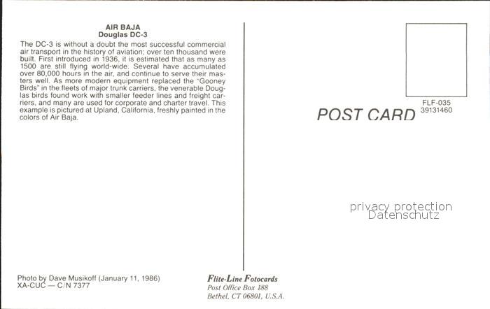 Flugzeuge Zivil Air Baja Douglas DC-3 XA-CUC postalisch nicht gelaufen Erhaltung siehe scans