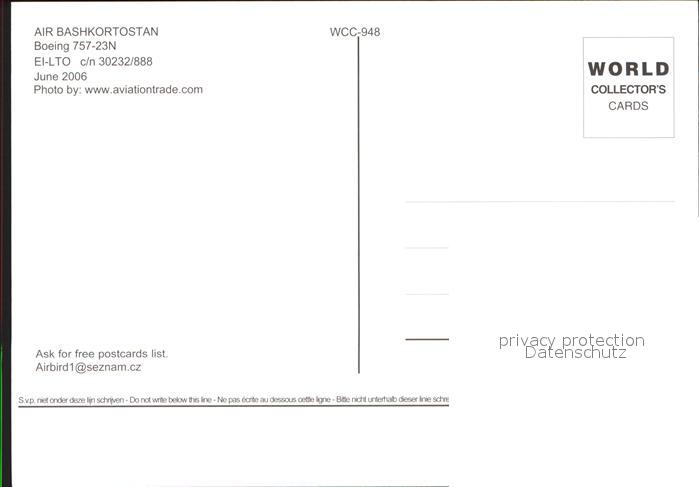 Flugzeuge Zivil Air Bashkortostan Boeing 757-23N EI-LTO c/n 30232/888 postalisch nicht gelaufen Erhaltung siehe scans
